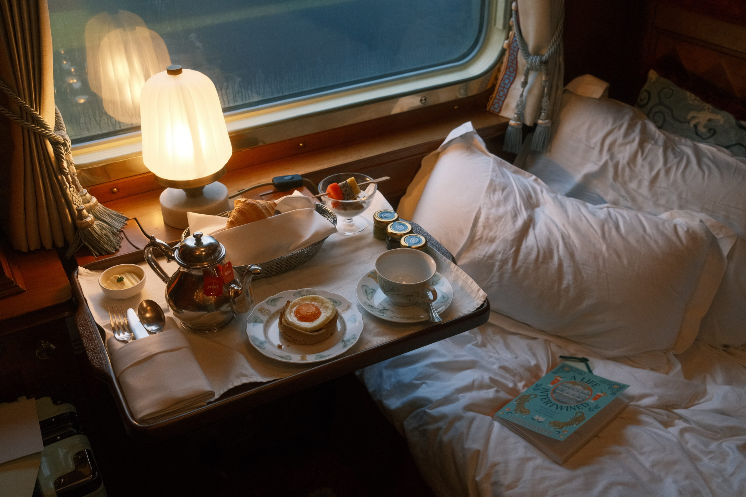 Chaque nuit, retrouver ma cabine soigneusement préparée par un service aussi discret qu'attentif était un plaisir à part entière. Une lampe de chevet diffusait une lumière douce sur un livre délicatement posé, m'invitant à plonger plus profondément dans la culture malaisienne. Même le balancement initialement perturbant du train devint rapidement une présence réconfortante, familière et apaisante.