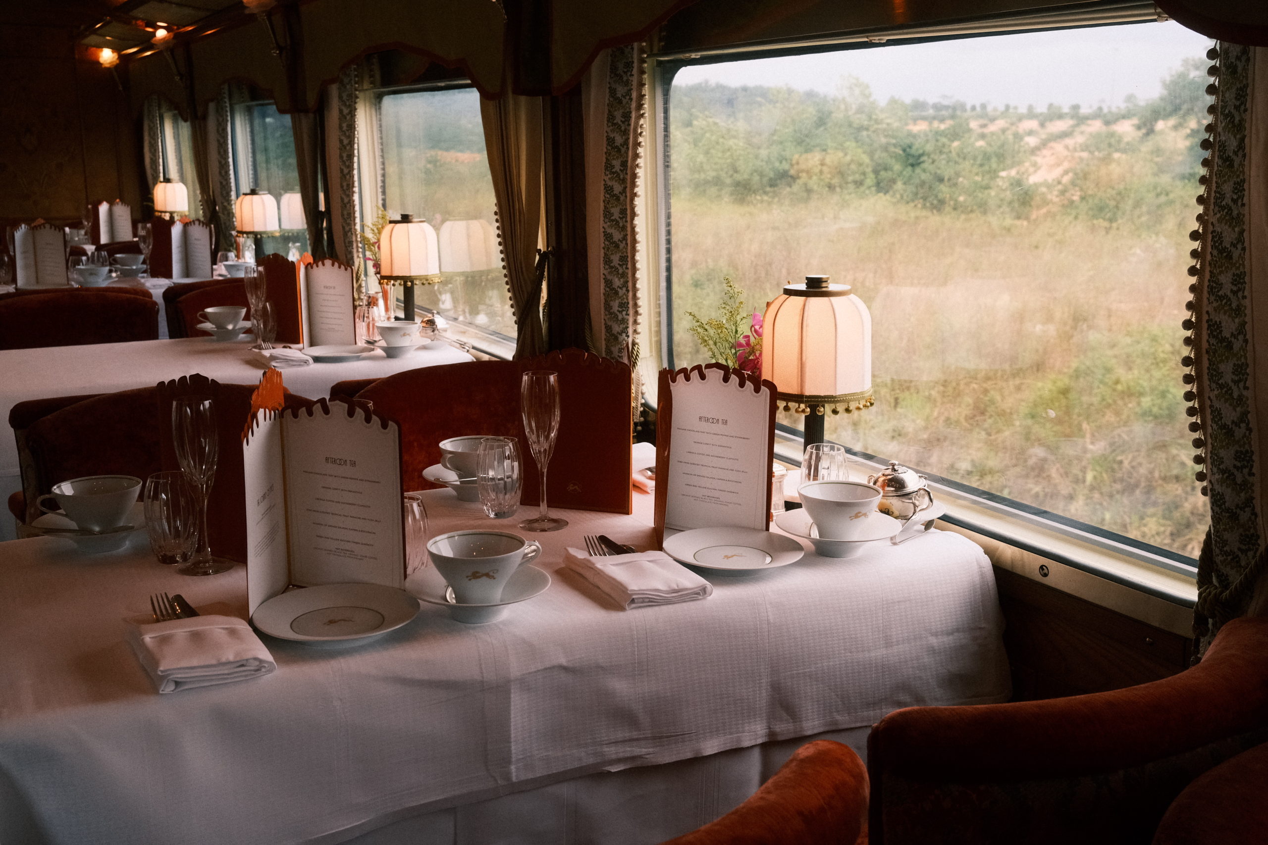 Dès les premiers instants à bord, l’impression d’entrer dans une véritable bulle temporelle se fait sentir. Tout autour de moi semble figé dans une époque révolue, raffinée et paisible. Je me prends rapidement au jeu d'explorer les différents espaces du train, comme un enfant fasciné par chaque nouvelle découverte : les restaurants à l’atmosphère feutrée et aux tables dressées avec un raffinement exquis, où le doux tintement des coupes de champagne et de la vaisselle fine ajoute une note supplémentaire d'élégance. Je découvre également le piano-bar intimiste aux lumières tamisées, le spa Dior – exclusivité remarquable du Belmond Eastern & Oriental Express – et surtout le wagon d'observation ouvert vers l'extérieur, offrant une vue imprenable sur les paysages traversés. L’intérieur douillet et élégant contraste merveilleusement avec l’environnement tropical extérieur, accentuant cette impression d'être suspendu hors du temps.