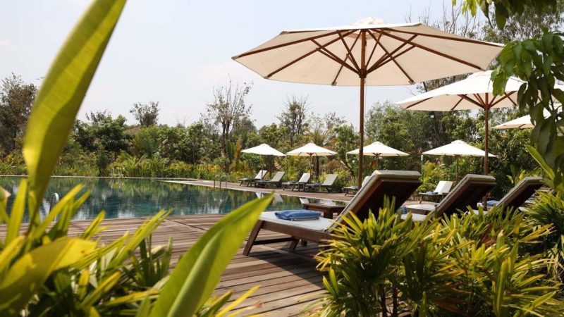 Sur place, ont été construits 17 bungalows comportant chacun deux chambres indépendantes. Ils reprennent les codes de l’architecture traditionnelle cambodgienne, à savoir le bois et la construction sur pilotis.